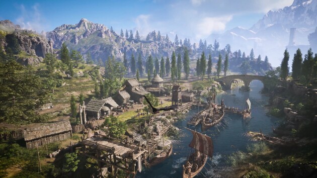 《伊米尔传奇》给人的第一印象,就是在当前主流MMORPG领域堪称第一梯队的画面表现。游戏采用虚幻5引擎开发,并引入Nanite虚拟化几何体技术与Lumen全动态全局光照系统,实现精细建模与实时光影效果。在技术层面之外,游戏在美术风格、镜头表现等方面也下了一番功夫,游戏采用电影化的镜头语言,人物的动作、表情、镜头的运用都十分接近3A大作的表现力,沉浸感十足的剧情表现力也避免了很多MMORPG剧情沦为鸡肋的问题。