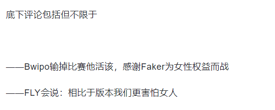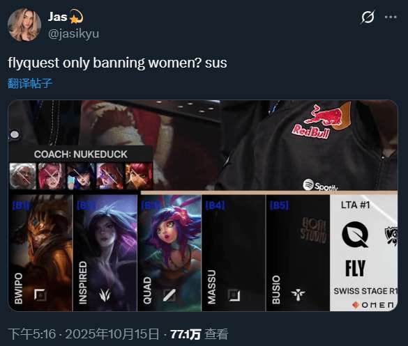 有网友当场发帖,言辞激烈地质问:“为什么只Ban女人?”这一质疑迅速得到了众多女玩家的响应,评论区里各种声音此起彼伏。有人嘲讽FLY“相比于版本更害怕女人”,言下之意是认为FLY此举并非出于战术考量,而是对女性英雄存在偏见;更有甚者放话“活该Bwipo输掉比赛”,并且为T1的Faker加油,还感谢他为女性权益而战。这波操作下来,Faker估计也是一脸问号,毕竟他可能只是专注于比赛,却意外卷入了这场性别争议之中。