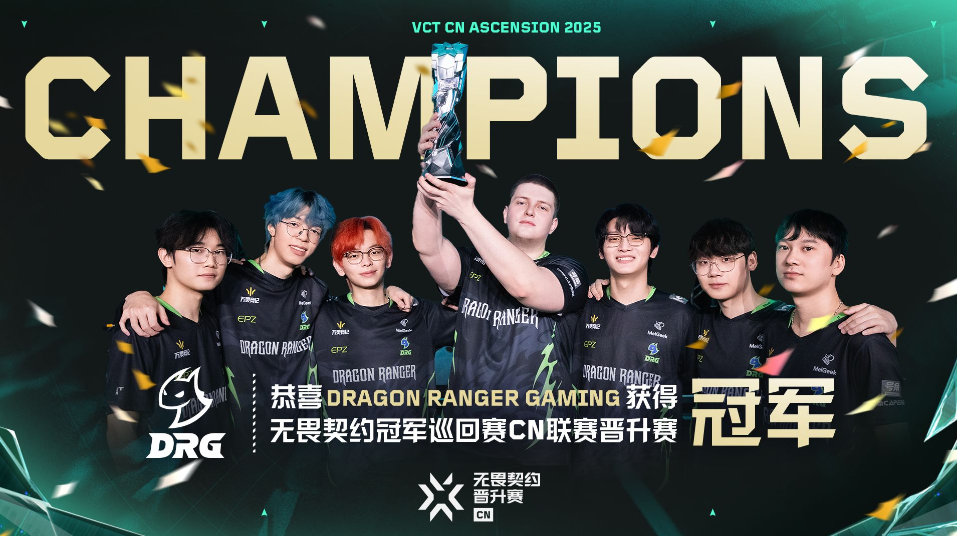 10月9日,2025无畏契约冠军巡回赛CN联赛晋升赛(VALORANT Champions Tour CN Ascension,以下简称“VCT CN联赛晋升赛”)在上海无畏竞技场迎来总决赛。八支参赛队伍经过9个比赛日的精彩对决,最终DRG在总决赛以3-0战胜对手RA,夺得2025 VCT CN联赛晋升赛的冠军荣誉,并获得为期1年的VCT CN联赛临时席位。