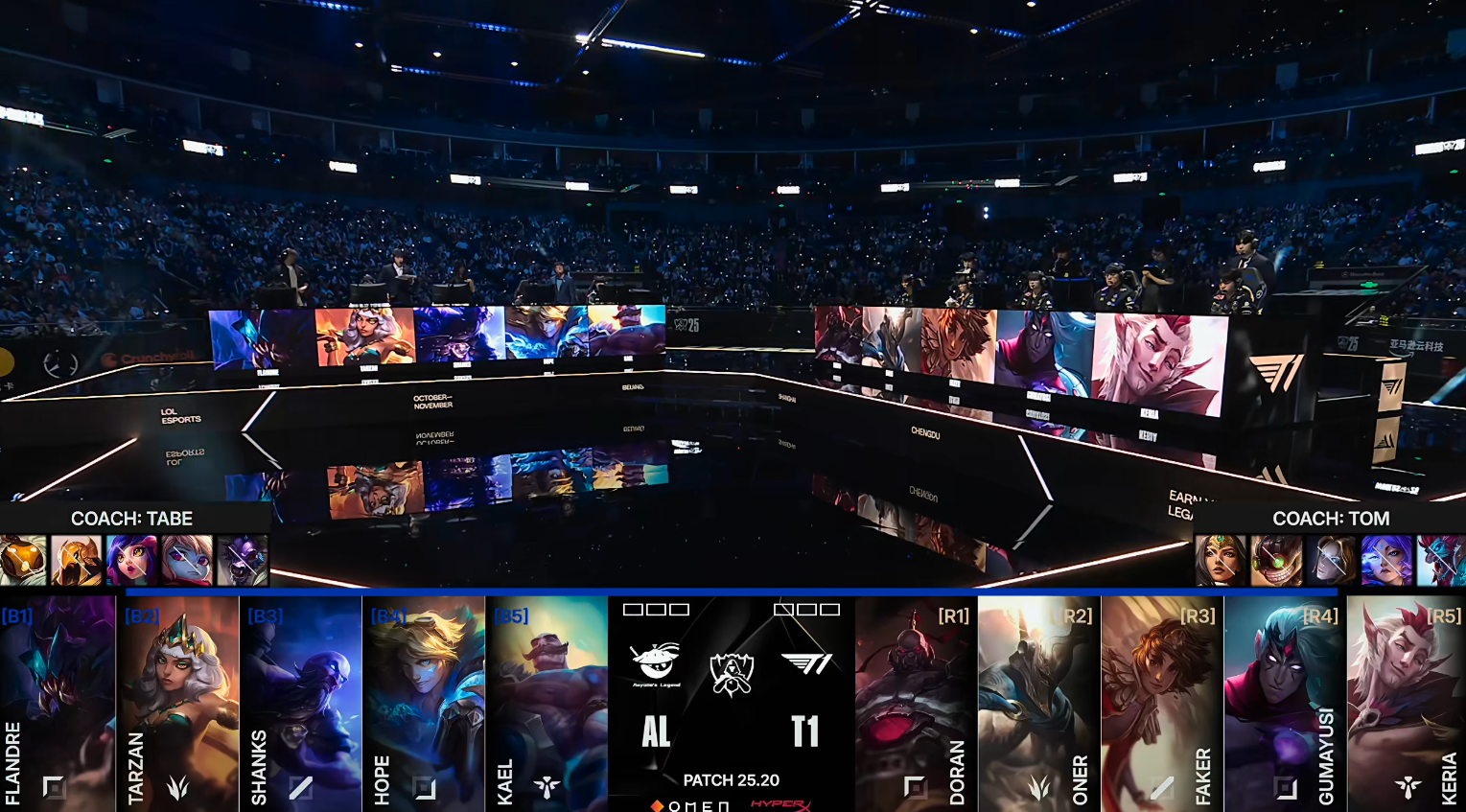 2025英雄联盟全球总决赛四分之一决赛,T1 3-2击败AL晋级四强!